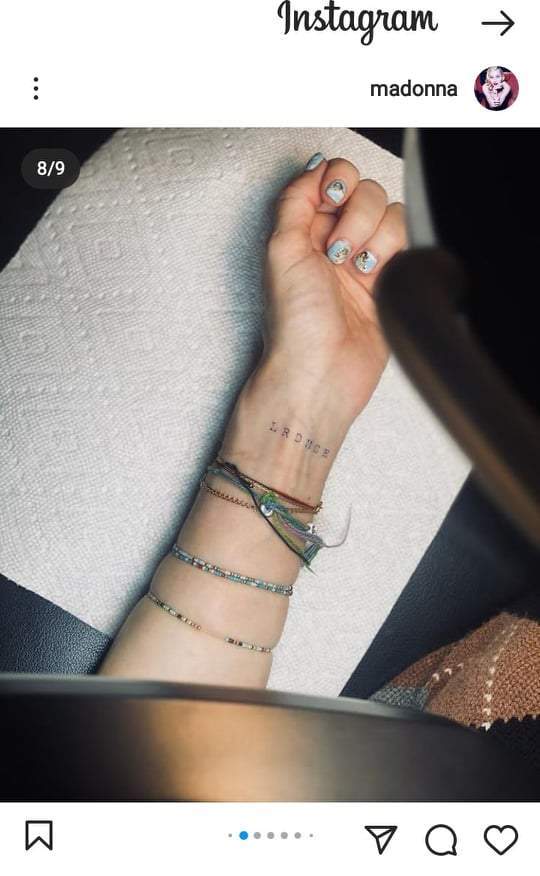 حصلت الراقصة والفنانة الاستعراضية الأسترالية مادونا "ملكة البوب"، صاحبة الـ62 عاماً، علي وشمها الأول بمعصمها ليمثل الأحرف الأولى لأطفالها الستة.