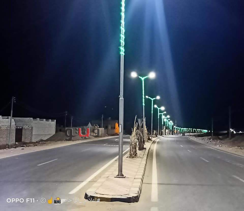 انتهت الأجهزة المعنية بمجلس مدينة الواحات البحرية، من أعمال الإنارة وتزيين الأعمدة بمدخل مدينة الباويطي وأيضا إنارة محمية جبل