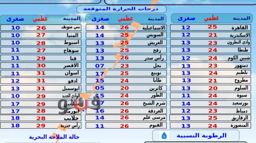 درجات الحرارة المتوقعة غدا بمحافظات مصر