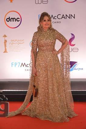 ومن أبرز الفنانات اللاتي جذبن الأنظار الفنانة يسرا التي تألقت بفستان ذهبي وبقصة شعر مميزة أبرزت جمالها.