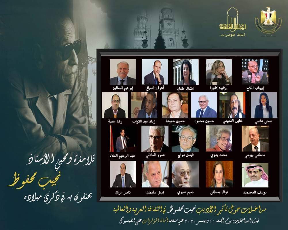 ينظم المجلس الأعلى للثقافة بأمانة الدكتور هشام عزمي، وفي إطار احتفاء وزارة الثقافة المصرية بذكرى ميلاد الأديب العالمي الراحل نجيب محفوظ؛ سلسلة مداخلات لمحبي وتلامذة الأديب نجيب محفوظ حول تأثيره في الثقافة العربية والعالمية.