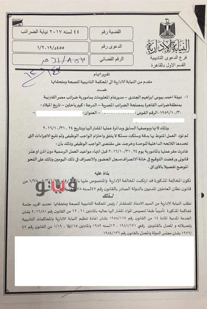 إحالة مدير عام المعلومات بـ"ضرائب مصر القديمة" للمحاكمة التأديبية