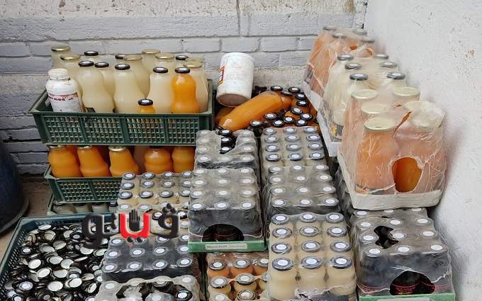 وجرى ضبط 580 زجاجة عصير مختلفة الأنواع والأحجام، وضبط مواد تصنيع عبارة عن 2 عبوة لون غذائي وجركن نكهة جوافة سائلة، وبالفحص الظاهري تبين أن الزجاجات بها رواسب وشوائب واضحة وغير محكمة الغلق ويوجد صدأ بالغطاء وقاع الزجاجات ووجود زجاجات منتهية الصلاحية وزجاجات غير مدون عليها أية بيانات تفيد تاريخ الإنتاج والصلاحية و مصدر التصنيع وبالتالي غير صالحة للاستهلاك طبقا للقانون 10 لسنة 1966 والقانون 281 لسنة 1994، وجرى نقل المضبوطات والتحفظ عليها بديوان الإدارة الصحية بالفشن لحين صدور قرار من النيابة العامة بشأنها وتحرر المحضر اللازم وقيد المحضر تحت رقم 1791جنح ا .د. ط لسنه 2020م.