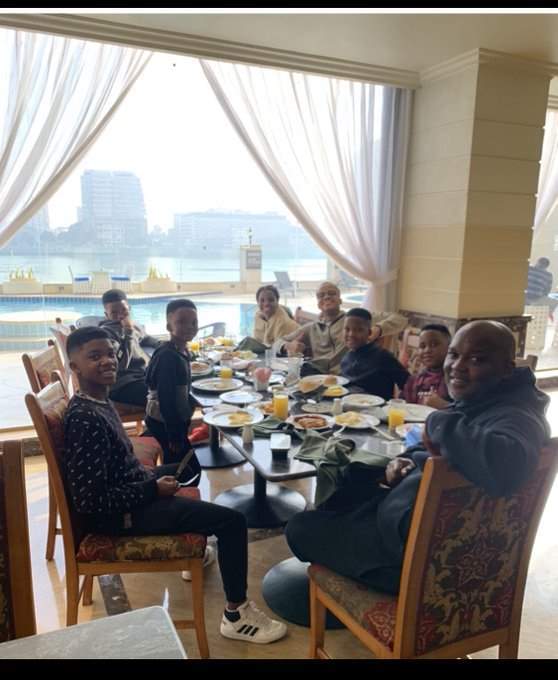 ونشر موسيماني صورة له مع ابناءه وزوجته وبعض أفراد عائلته أثناء تناولهم الإفطار بأحد الفنادق على ضفاف النيل.