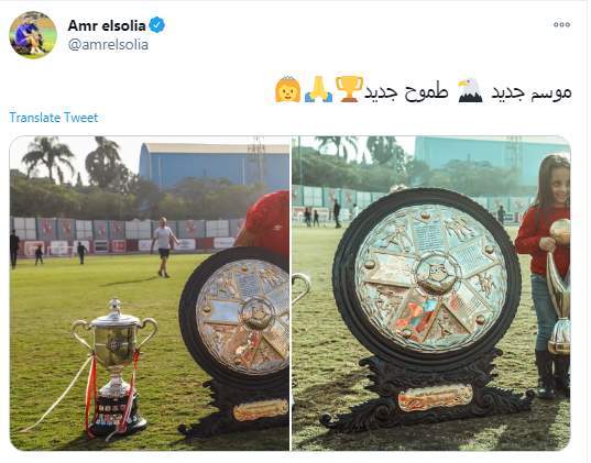 بصورة لابنته الصغيرة ليلي بجوار درع الدوري وكأس مصر، أكد لاعب الأهلي عمرو السولية على طموحه الجديد الذي بدأن مع نداية الموسم الكروي الجديد في مصر، والذي أنطلق أمس الجمعة بمباريات إنبي وأسوان، وطلائع الجيش ضد الجونة، والإنتاج الحربي ضد سيراميكا كليوباترا.