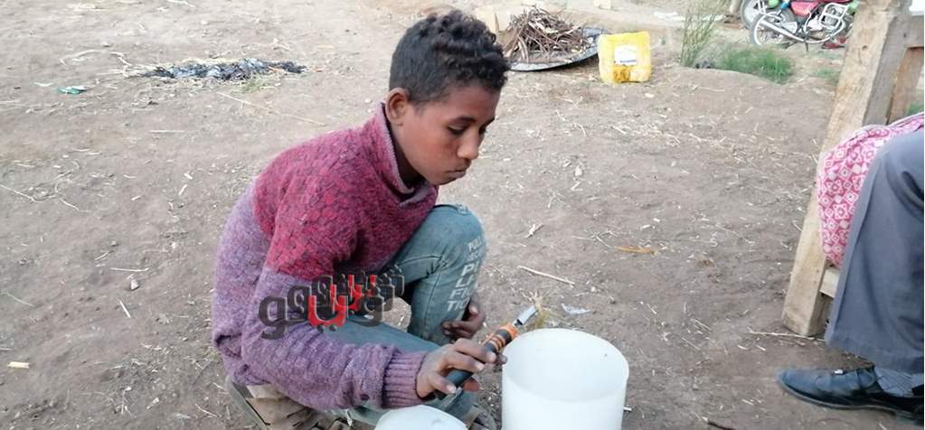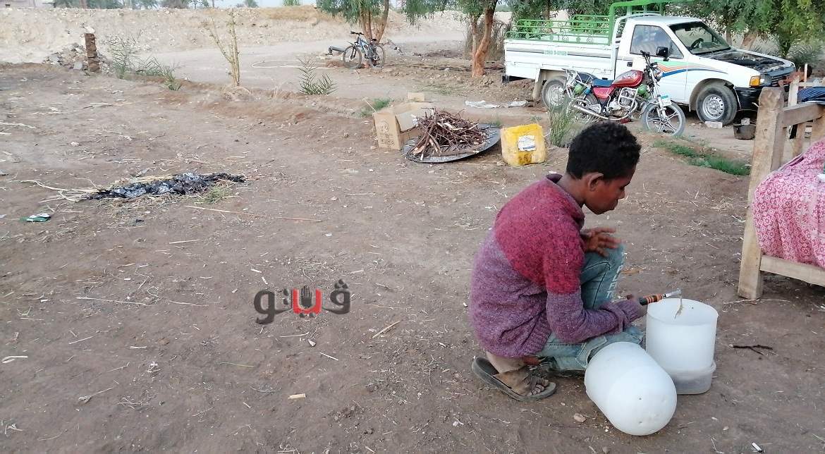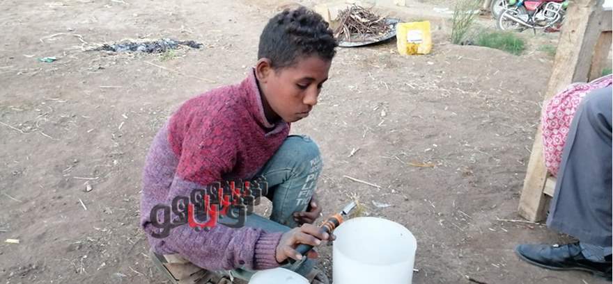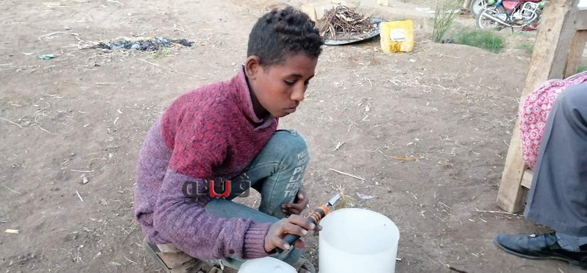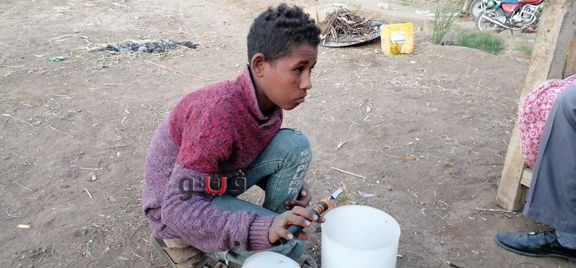 وعند الاقتراب منه تجد على وجهه ابتسامة يواجه بها صعوبات الحياة، كان يهاب الكاميرا ولكن ما هي إلا لحظات وبدأ يتحدث عبد الله عوض البالغ من العمر 15 عاما، ليسرد لنا طبيعة عمله الذي قد يستغربه الكثيرون ولكن هذه هي طبيعة أطفال الصعيد "الشقاء والتعب".