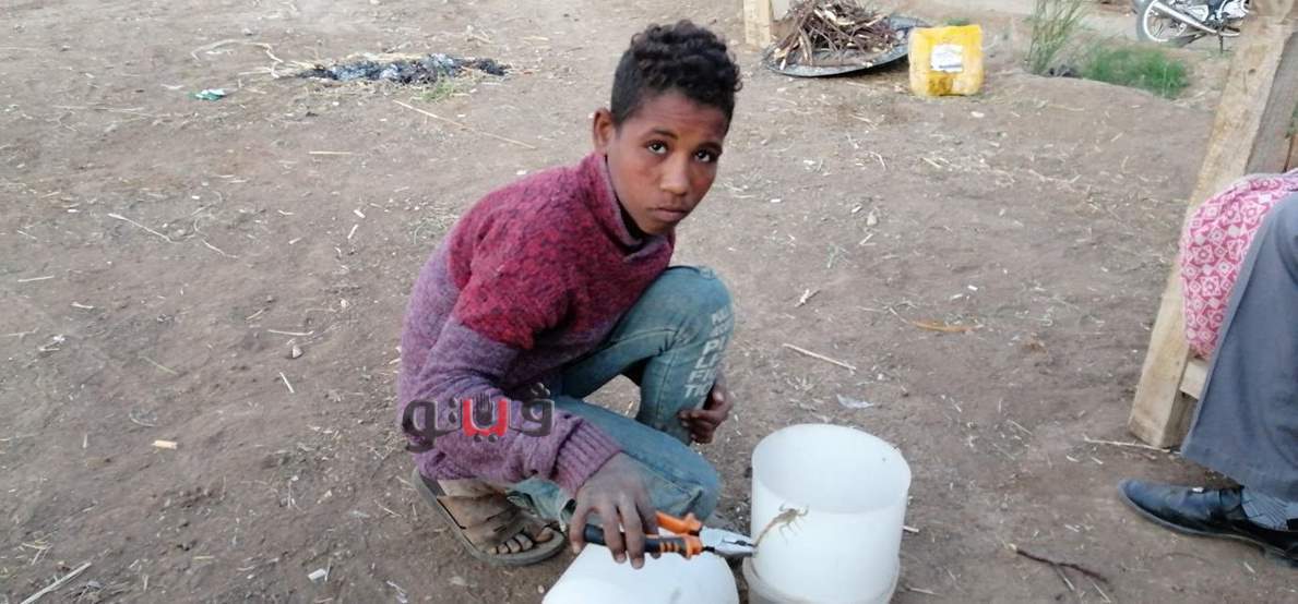 طفل العقارب بالصعيد.. حكاية عبد الله و"لقمة العيش" مع الكائنات السامة | فيديو