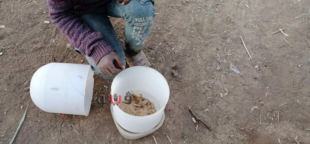 وأشار إلى أنه يصطاد العقرب ممسكا بيده مقص صغير حديدي، لكي يستطيع اصطيادها ووضعها في الجردل الخاص به.