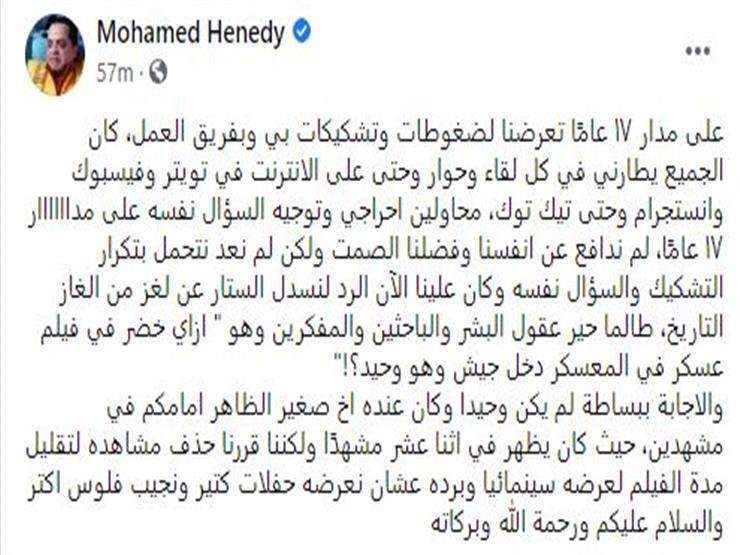 فى هذا السياق، كتب «هنيدي» فى منشور عبر صفحته الرسمية بموقع "فيس بوك": «تعرضنا لضغوطات وتشكيكات بي وبفريق العمل، كان الجميع يطاردني في كل لقاء وحوار وحتى على الإنترنت في تويتر وفيسبوك وإنستجرام وحتى تيك توك، محاولين إحراجي وتوجيه السؤال نفسه على مدار 17 عاما، لم ندافع عن أنفسنا وفضلنا الصمت ولكن لم نعد نتحمل بتكرار التشكيك والسؤال نفسه وكان علينا الآن الرد لنسدل الستار عن لغز من ألغاز التاريخ، طالما حير عقول البشر والباحثين والمفكرين».