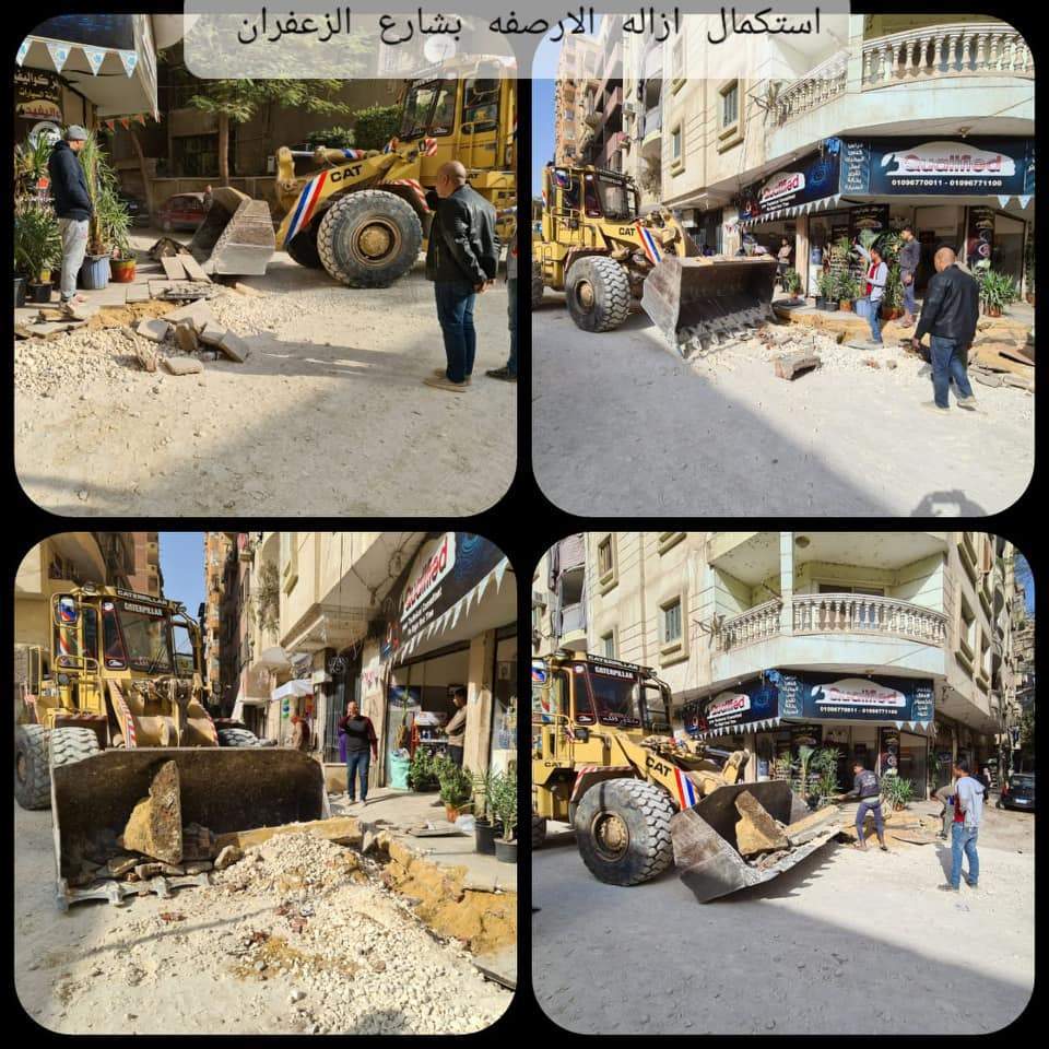 بأشراف محمد نور الدين رئيس الحي، جهودها في استكمال أعمال تركيب البلدورات الخرسانية واستكمال إزالة الأرصفة المتعدية علي خط التنظيم