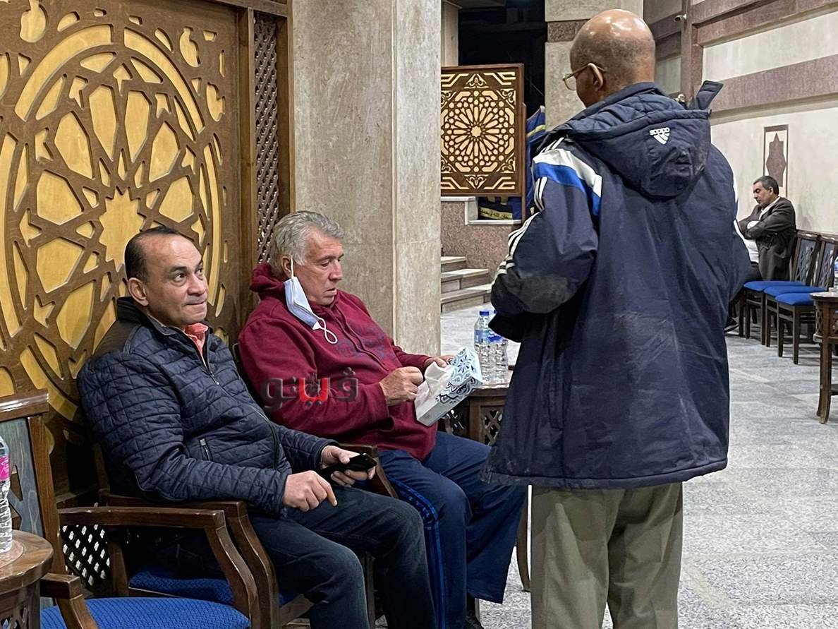 اللاعب وأسرته في استقبال المعزين، وبحضور محمود الخواجة نجم الزمالك السابق، وحمادة
