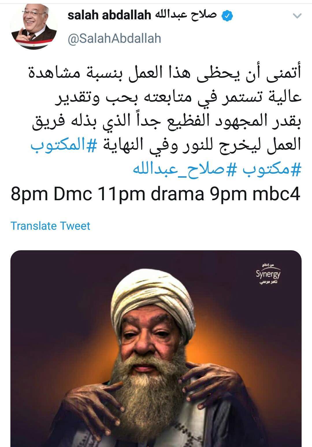 وعلق صلاح عبد الله على الأفيش قائلا: "أتمنى أن يحظى هذا العمل بنسبة مشاهدة عالية تستمر في متابعته بحب وتقدير بقدر المجهود الفظيع جداً الذي بذله فريق العمل ليخرج للنور وفي النهاية #المكتوب #مكتوب".