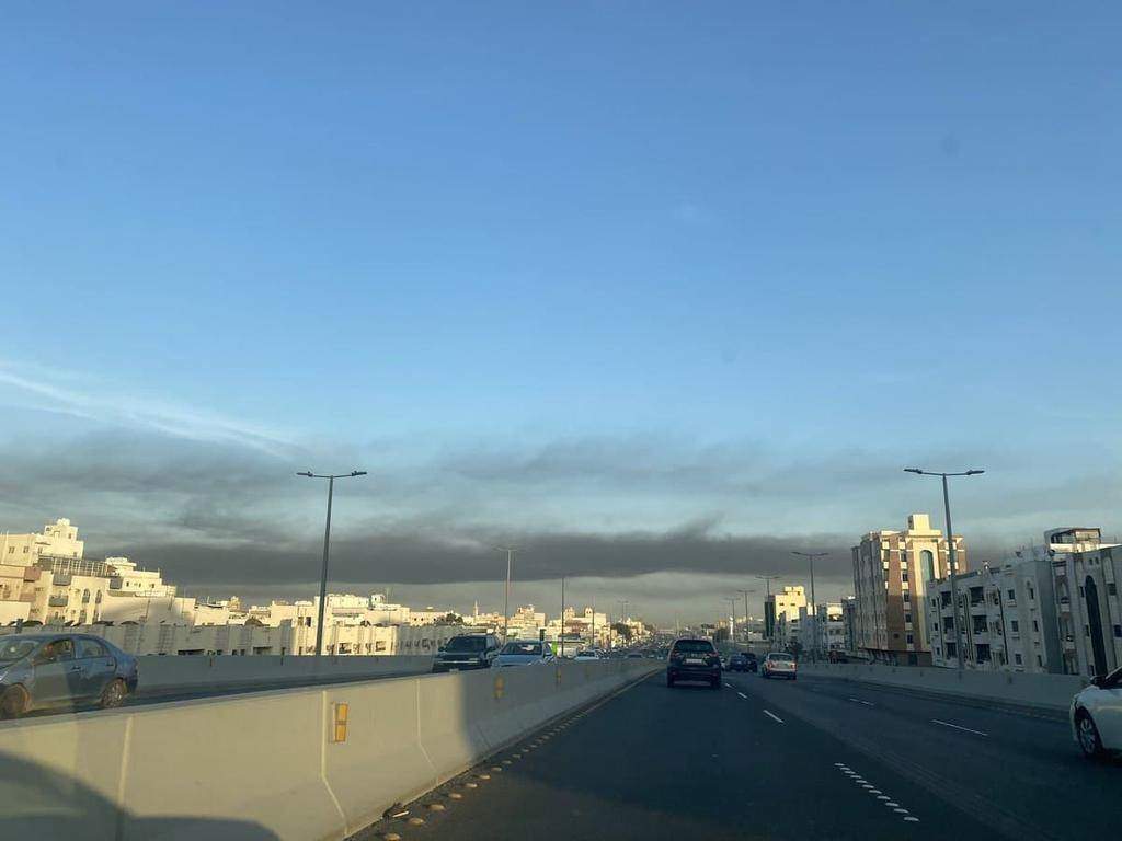سحب سوداء في سماء جدة بسبب اشتعال النيران في ناقلة نفط | صور