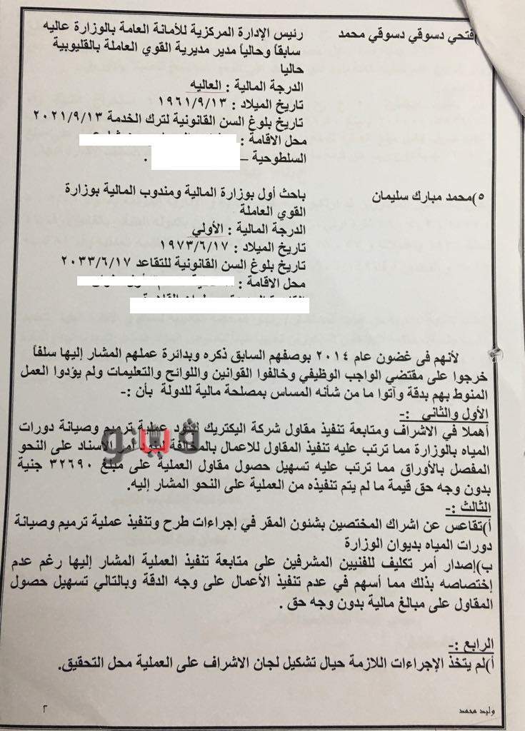 وتبين من أوراق القضية أن فتحي دسوقي محمد، مدير مديرية القوى العاملة بمحافظة القليوبية لم يتخذ خلال فترة عمله رئيسًا للإدارة المركزية للأمانة العامة بالوزارة الإجراءات اللازمة حيال تشكيل لجان الإشراف على العملية، وأعتمد استمارة 50 ع ح لاستخراج الشيك بمبلغ 163 ألف جنيه مما سهل حصول المقاول على مستحقاته دون تنفيذ كافة بنود أمر إسناد.