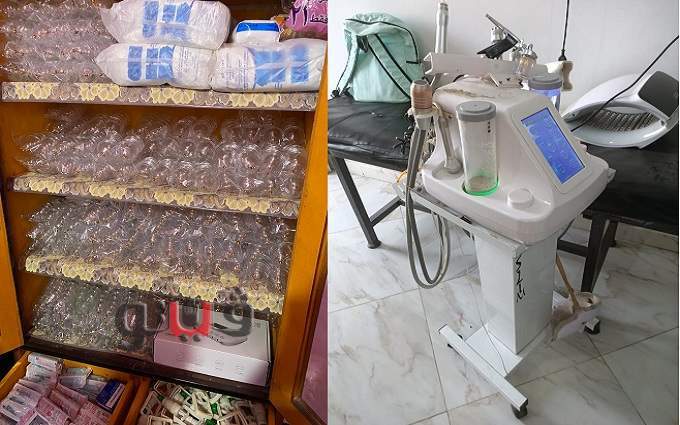 بالإضافة إلى ضبط مركز آخر للتجميل والعناية بالبشرة بمدينة بني سويف، بداخله أدوية