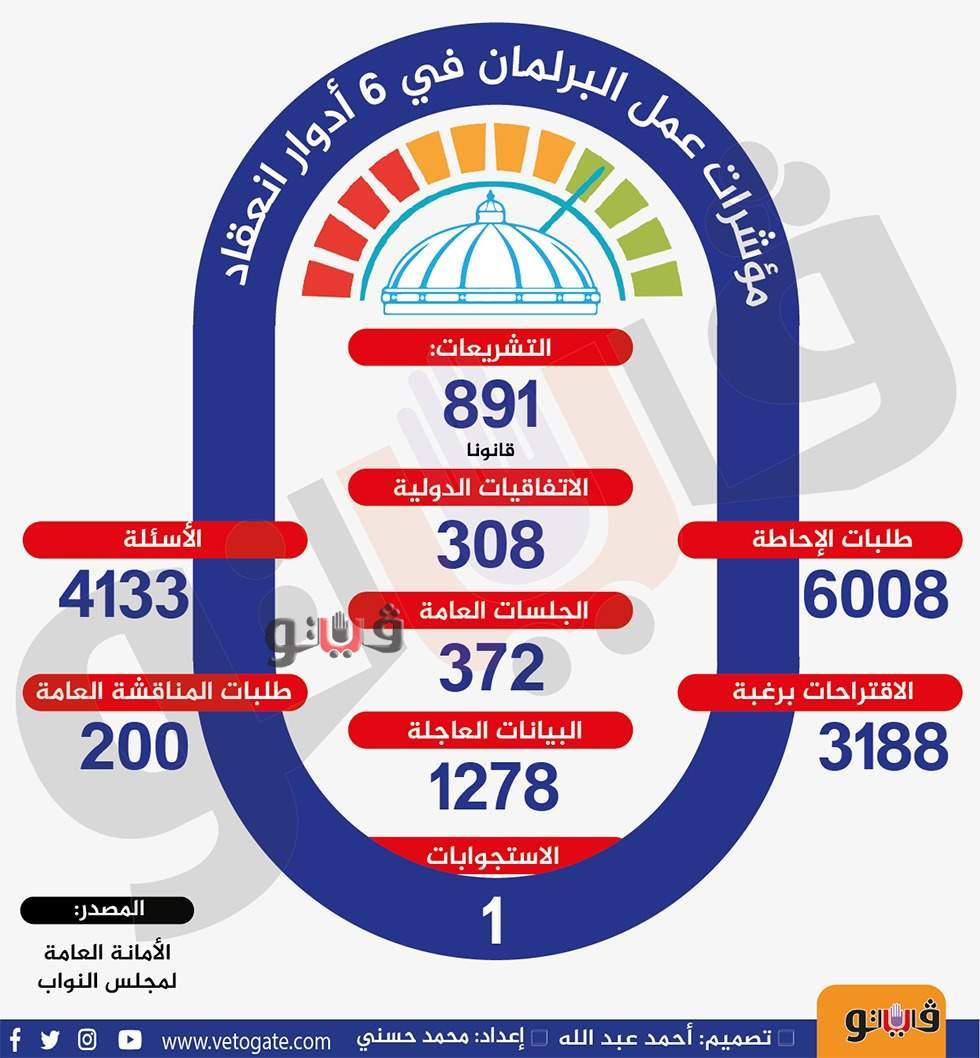 مؤشرات عمل البرلمان في ٦ أدوار انعقاد..إنفوجراف الإثنين 14/ديسمبر/2020 - 10:03 م 12/14/2020 10:03:46 PM مؤشرات عمل البرلمان في ٦ أدوار انعقاد شارك طباعة 18 حجم الخط شارك طباعة مجلس النواب البرلمان المصري مجلس النواب 2020