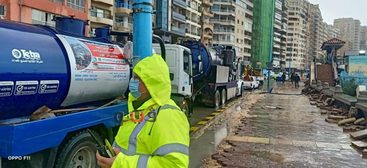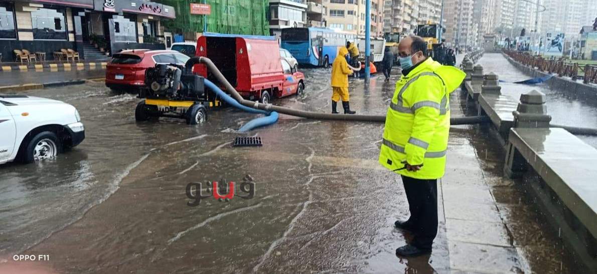 5 صور ترصد شفط مياه الأمطار من شوارع وميادين الإسكندرية