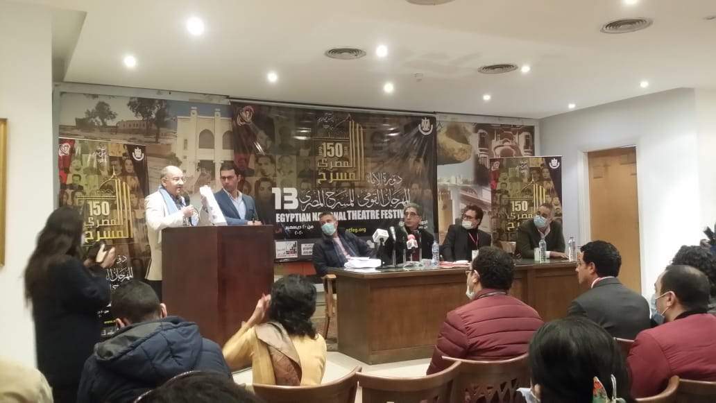 أقام المهرجان القومي للمسرح المصري في دورته الثالثة عشر، برئاسة الفنان يوسف إسماعيل مساء أمس الثلاثاء، مؤتمرا صحفيا للكشف عن كافة تفاصيل الدورة المقرر انعقادها في الفترة من 20 ديسمبر الجاري، حتى 4 يناير المقبل، وذلك بالمجلس الأعلى للثقافة بدار الأوبرا.