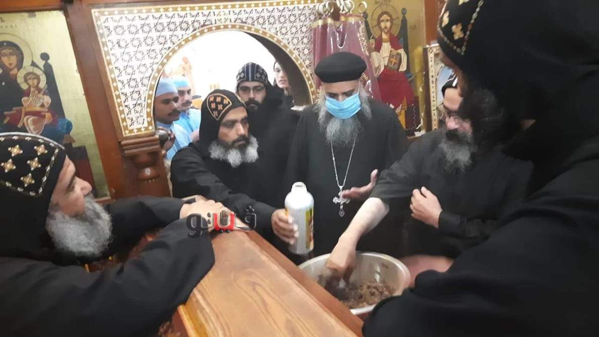 وصلى القمص إيسوزورس أمين الدير، والقس هدرا الفاخوري، عشية عيد نياحة القديس العظيم الأنبا متاؤس الفاخوري، وتطيب رفات القديس الموجودة بالمقصورة الخشبية بجوار مدخل الحصن الأثري، وشاركه في الصلوات، الراهب القمص متاؤس الفاخوري، والراهب القمص هدرا الفاخوري، والقس متاؤس زخاري راعي كنيسة الأم دولاجي وأولادها الأربعة بإسنا، ومجمع رهبان الدير، وذلك وسط إجراءات احترازية وأمنية مشددة.