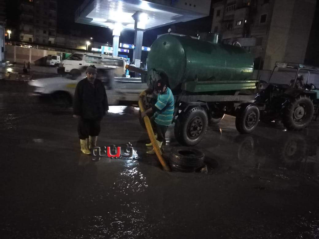 رؤساء المراكز والمدن يواصلون رفع مياه الأمطار ليلا بكفر الشيخ | صور