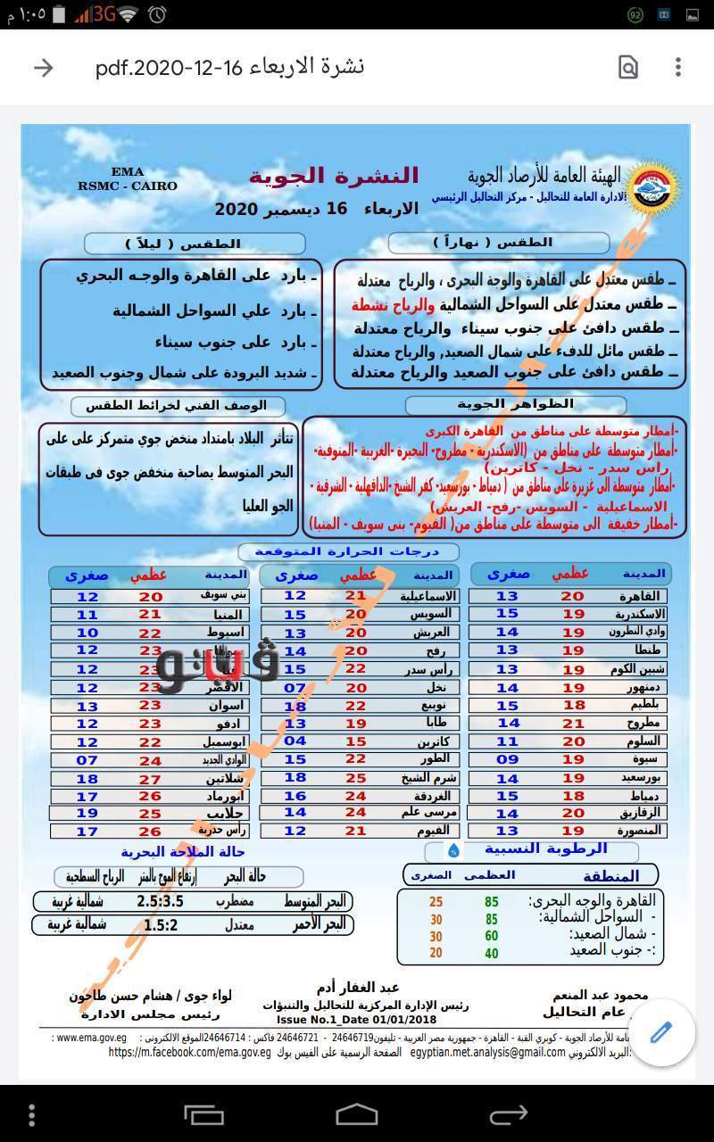 وفيما يلي بيان بدرجات الحرارة المتوقعة اليوم على مدن ومحافظات مصر..