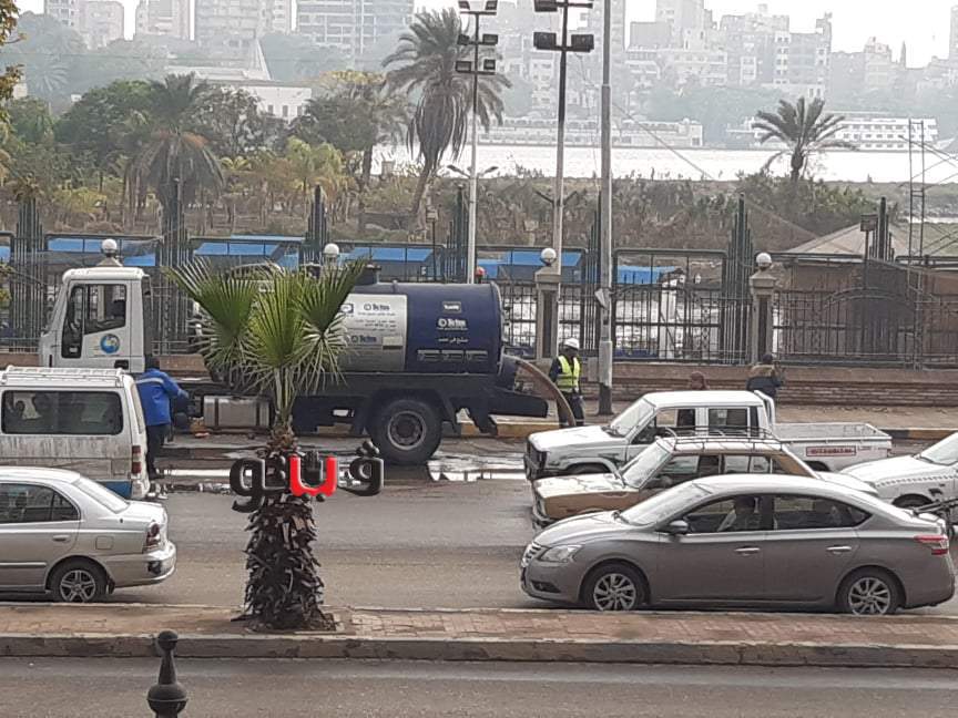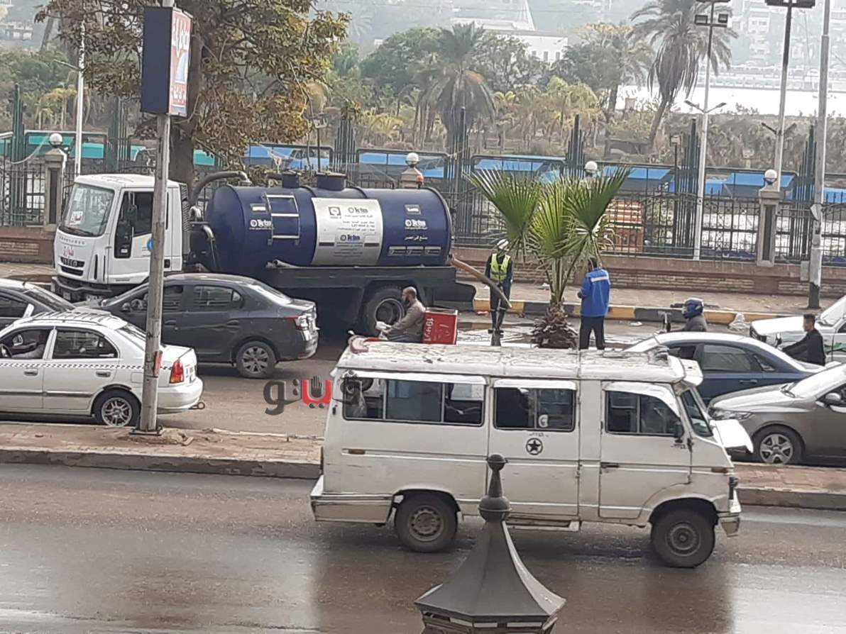 الدفع بسيارات لكسح مياه الأمطار من شوارع الجيزة | فيديو وصور