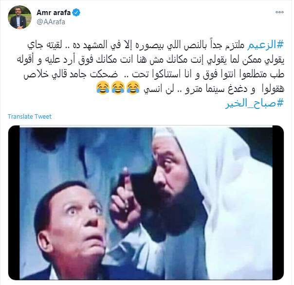 وكتب المخرج عمرو عرفة تغريدة على تويتر "#الزعيم ملتزم جداً بالنص اللي بيصوره إلا في المشهد ده.. لقيته جاي يقولي ممكن لما يقولي إنت مكانك مش هنا انت مكانك فوق أرد عليه وأقوله طب ماتطلعوا انتوا فوق وانا استناكوا تحت.. وحينها ضحكت جامد، فقال لي خلاص هقولوا ودغدغ سينما مترو.. لن أنسى".