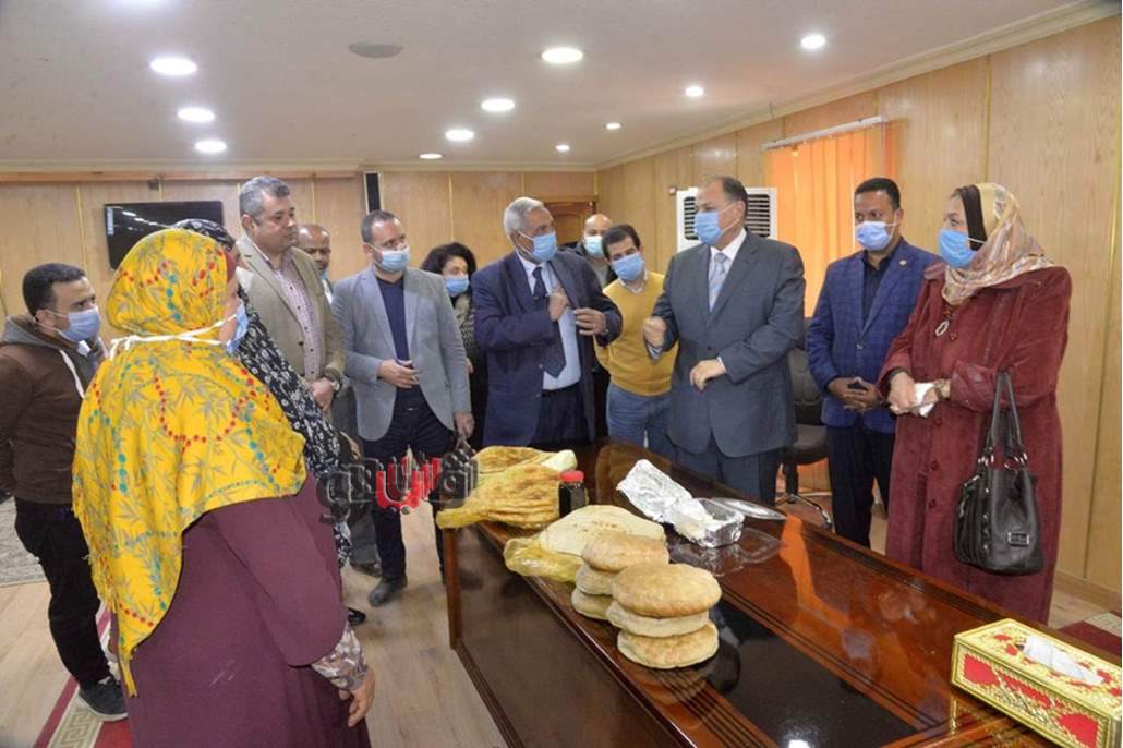 حيث التقى المحافظ إحدى السيدات كنموذج ناجح في إقامة مشروع متناهي الصغر والاستفادة من استلامها لفرن منزلي وجوال دقيق من إحدى الجمعيات الأهلية، مشيداً بما تقدمه من منتجات ذات جودة عالية وأسعار مناسبة من العيش الشمسي والفطير.