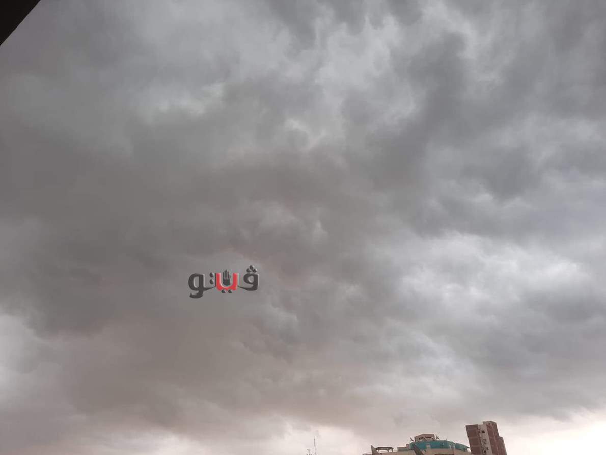 الغزيرة والرعدية على المحافظة وضواحيها مع هبات رياح شديدة .