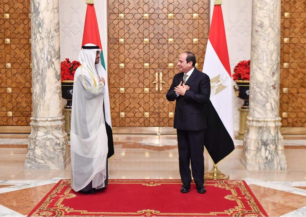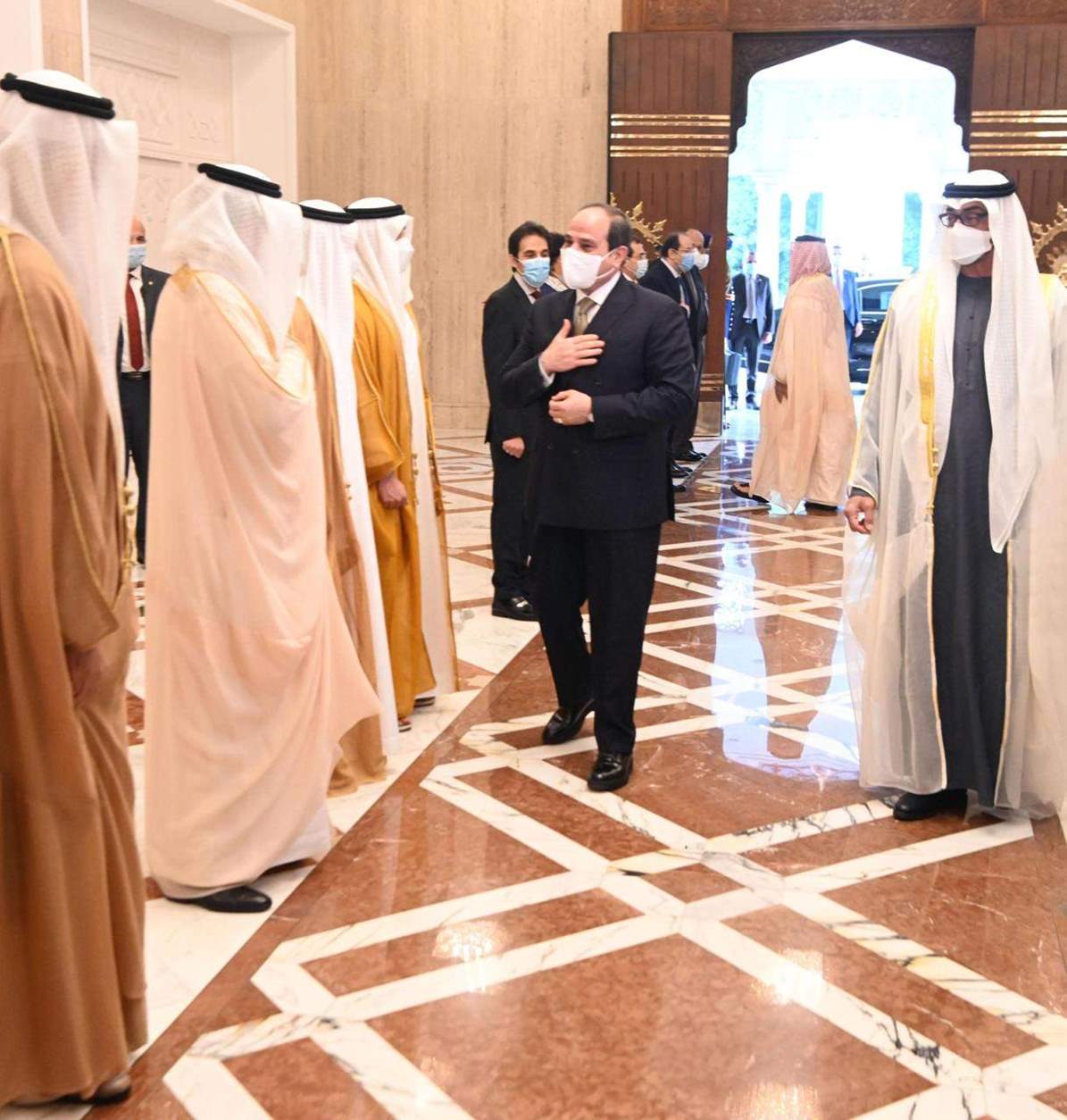 وعبر الرئيس السيسي عن الامتنان بلقائه مجدداً لاستمرار التشاور والتنسيق تجاه مختلف القضايا محل الاهتمام المشترك، وكذلك موضوعات التعاون الثنائي وذلك في إطار العلاقات التاريخية والاستراتيجية بين مصر والإمارات، تلك العلاقات التي أرسى دعائمها المغفور له الشيخ زايد بن سلطان آل نهيان لتستمر عبر عقود ولتزداد قوة بإرادة مشتركة صادقة في إطار من الأخوة والاحترام المتبادل والثقة والتفاهم والمصير المشترك، حيث أثبتت السنوات الأخيرة فاعلية تلك العلاقات في مواجهة المخاطر التي استهدفت أمن المنطقة ومصالح شعوبها ومقدرات دولها.