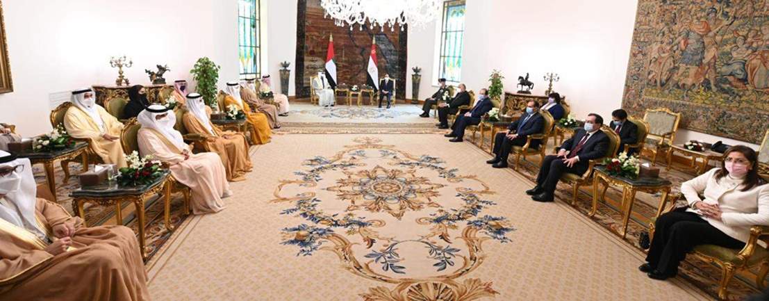 وفي هذا السياق، أشاد الرئيس بالتطور الكبير والنوعي الذي شهدته العلاقات المصرية الإماراتية في المجالات السياسية والاقتصادية والأمنية والعسكرية وغيرها، والنمو الملحوظ في معدل التبادل التجاري وحجم الاستثمارات، مشيراً إلى الحرص المشترك للمضي قدماً نحو مزيد من تعميق وتطوير تلك العلاقات.
