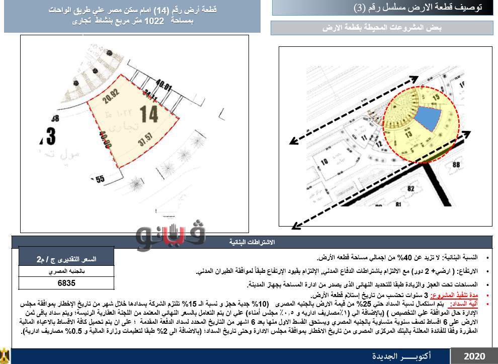 كما تطرح أرض بمساحة 1022 متر بنشاط تجارى بسعر 6835 جنيه بقيمة 6.9 مليون جنيه.