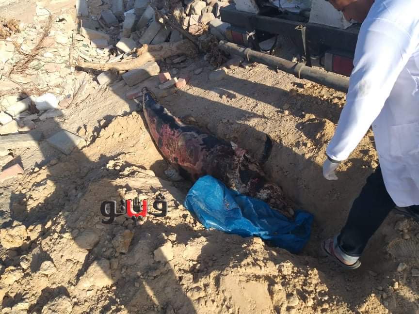 يذكر أن المعهد كان قد تلقى أمس بلاغا بالعثور على جثة الدولفين نافق في حالة سيئة ومتآكل في معظم أجزائه ولا يصلح للتحنيط لذا تم بدفنه في المدفن الصحي.