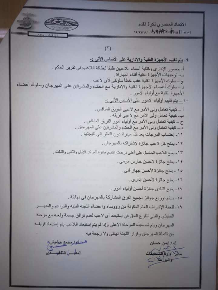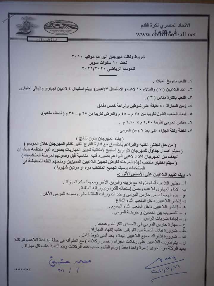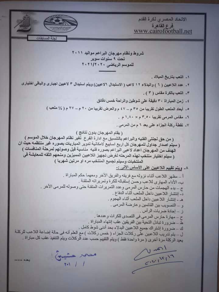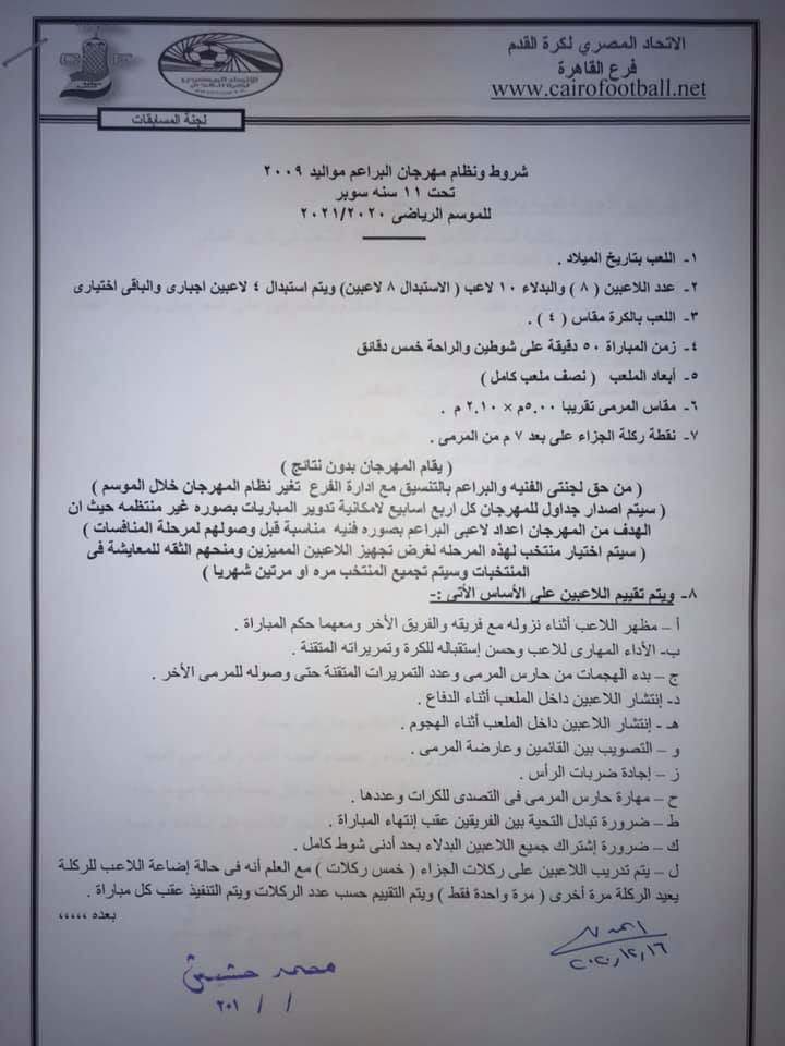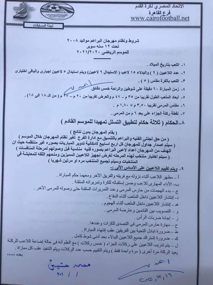 لوائح مهرجان سوبر براعم منطقة القاهرة موسم 2020-2021