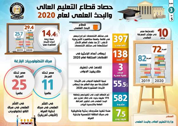 حصاد قطاع التعليم العالي والبحث العلمي خلال 2020 | إنفوجراف