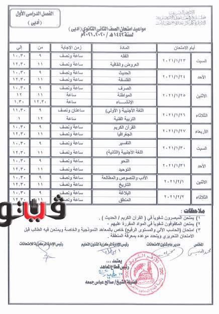 وشدد على ضرورة الالتزام بكافة الإجراءات الصحية باللجان، والتأكيد على توزيع أدوات التعقيم، والتوزيع العادل والاستخدام الأمثل، وألا يزيد عدد الطلاب باللجنة عن (12) طالب داخل اللجنة.