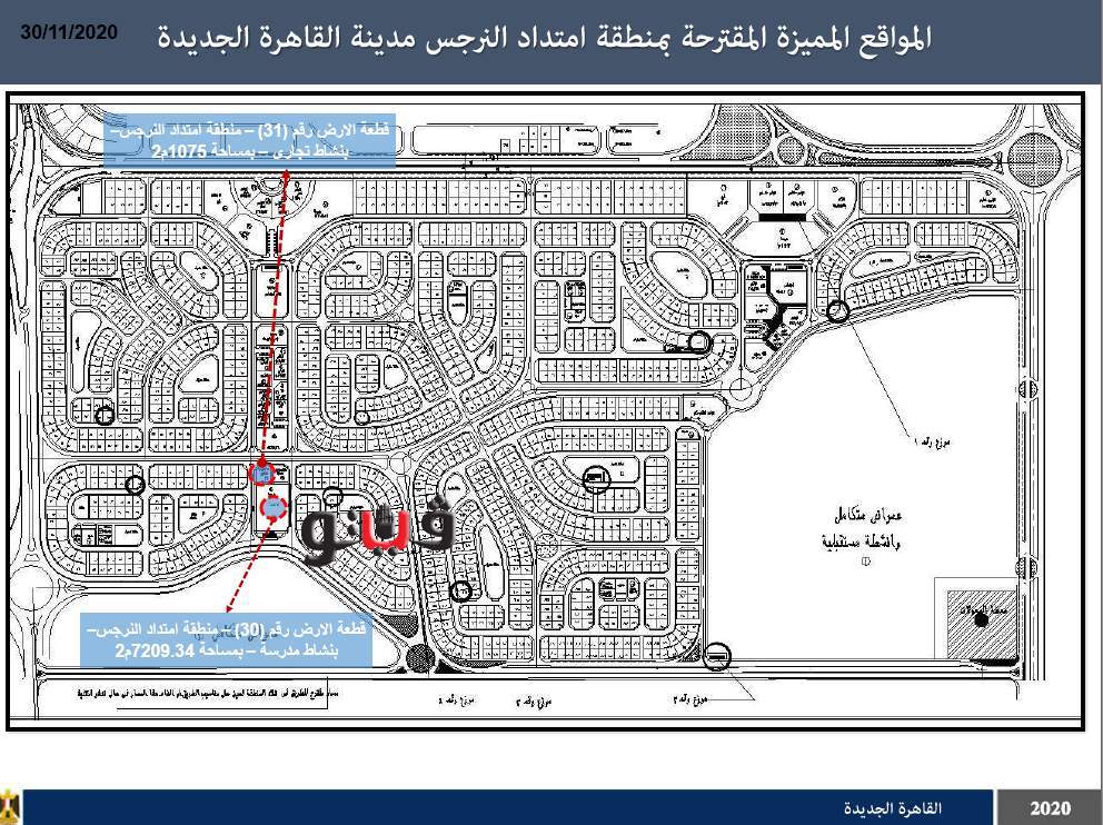 في مدينة القاهرة الجديدة تطرح وزارة الإسكان عددا من قطع الأراضى وتضم ارضا بمساحة 12.5 فدان بنشاط عمراني بسعر 7365 جنيها للمتر بقيمة 386 مليون جنيه، وأرضا بمساحة 21 فدانا بنشاط عمراني متكامل بسعر 6450 جنيها للمتر بقيمة إجمالية 568 مليون جنيه.