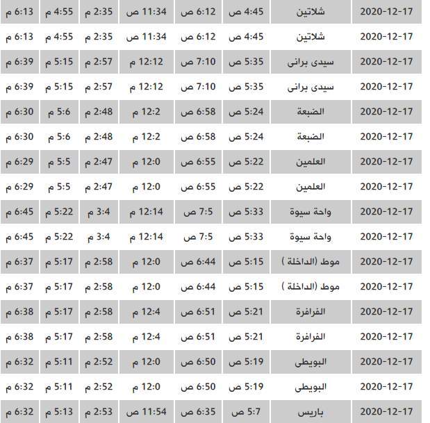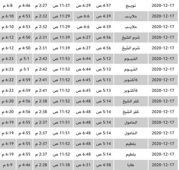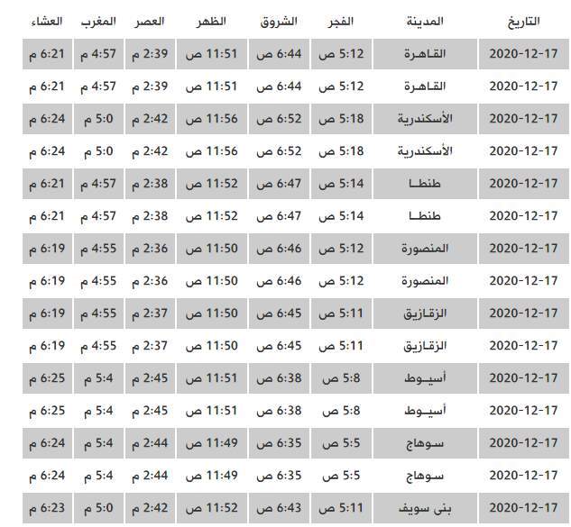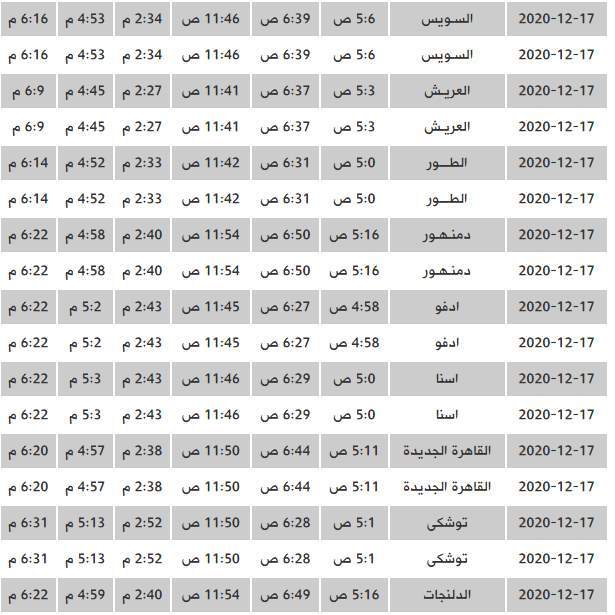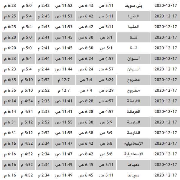 وحسب التوقيت الذي أعلنته دار الإفتاء بالتعاون مع الهيئة المصرية العامة للمساحة فإن توقيت الصلوات الخمس كالتالي: