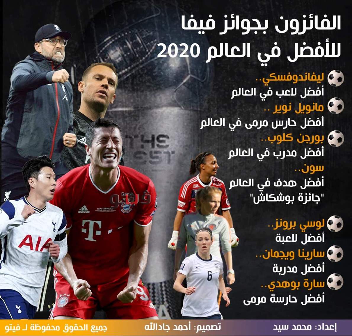 الفائزون بجوائز فيفا للأفضل في العالم 2020| إنفوجراف الخميس 17/ديسمبر/2020 - 11:14 م 12/17/2020 11:14:13 PM جوائز فيفا للأفضل في العالم 2020 شارك طباعة 18 حجم الخط شارك طباعة ميسي ليفاندوفيسكي فيفا الأفضل في العالم