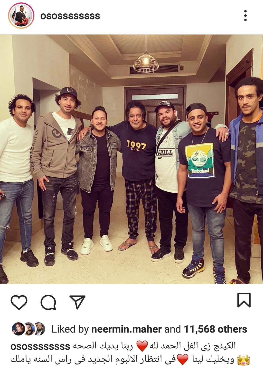 وعلق محمد أسامة على الصورة قائلا:الكينج زى الفل الحمد لله.. ربنا يديك الصحه ويخليك لينا.. فى انتظار الألبوم الجديد فى راس السنة ياملك".
