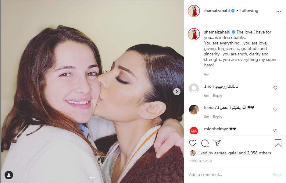 ونشرت شام الذهبي صورة تجمعها بأصالة حيث علقت عليها قائلة: "الحب اللي عندي لكي لا يوصف أنتي كل شيء.. الحب والعطاء والتسامح والامتنان والصدق.. أنت الحقيقة والوضوح والقوة .. أنت كل شيء وبطلي الخارق".