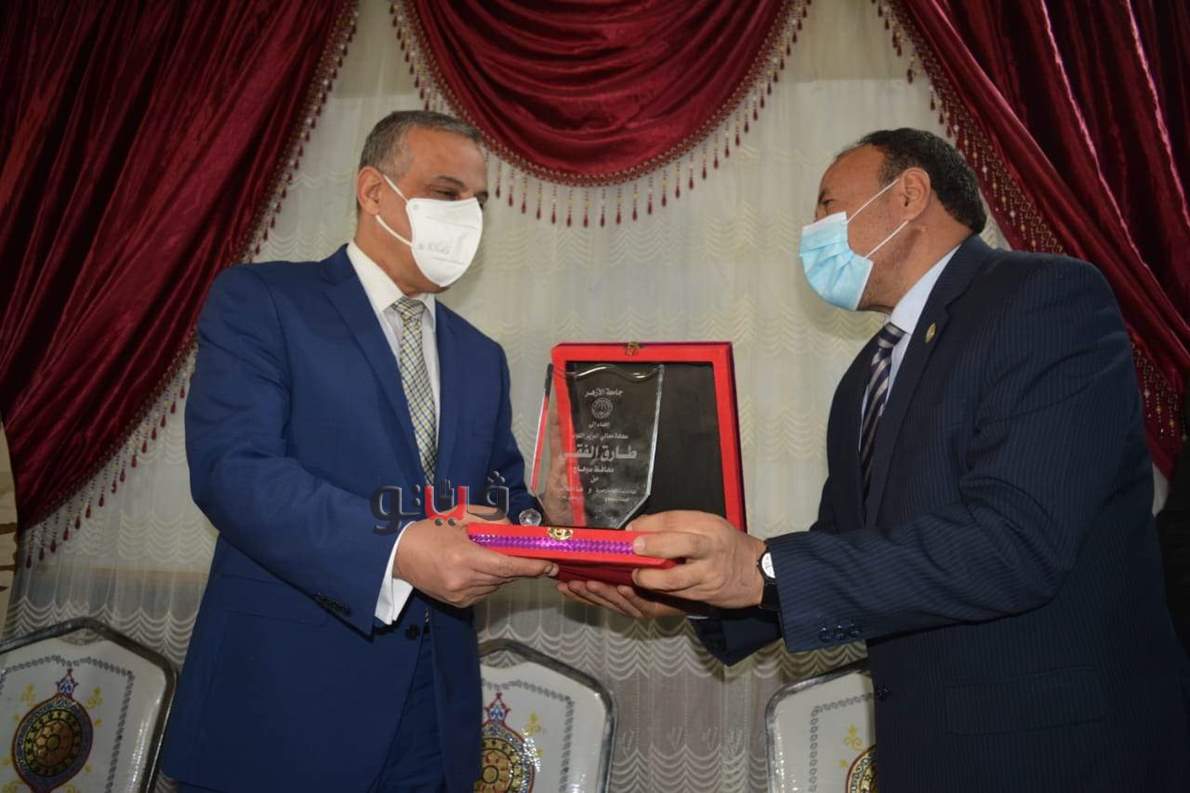 كما نقل تحيات الإمام الأكبر الدكتور أحمد الطيب شيخ الأزهر الشريف، والدكتور محمد المحرصاوي رئيس الجامعة، كما قدم الشكر والتقدير لعميد كلية الدراسات الإسلامية والعربية بسوهاج، و لعميد كلية اللغة العربية بجرجا على حسن التعاون في تنظيم هذا اليوم.