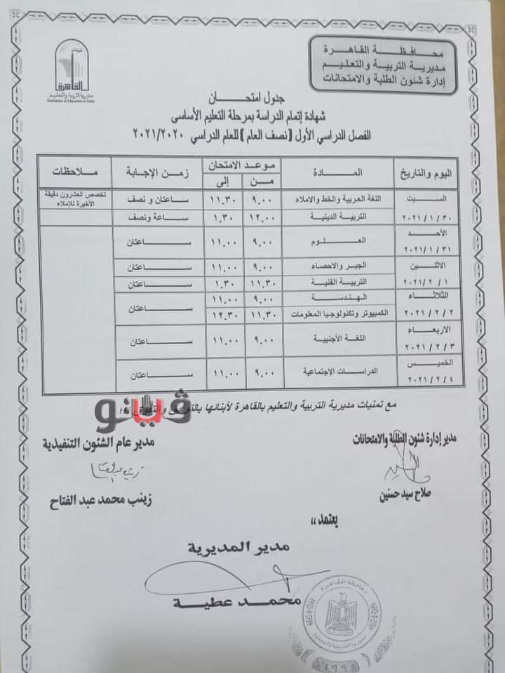 جدول امتحانات الشهادة الإعدادية في القاهرة