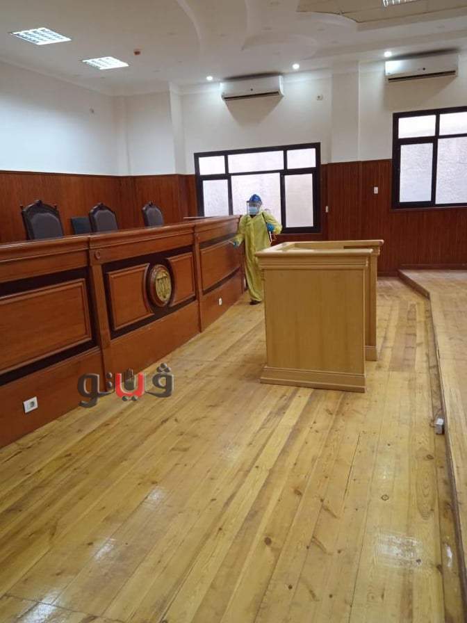 وتم تعقيم مقرات مجلس الدولة ومنصات القضاء بقاعات المحاكم المختلفة، والتي يعتليها القضاة، لنظر القضايا المستعجلة.
