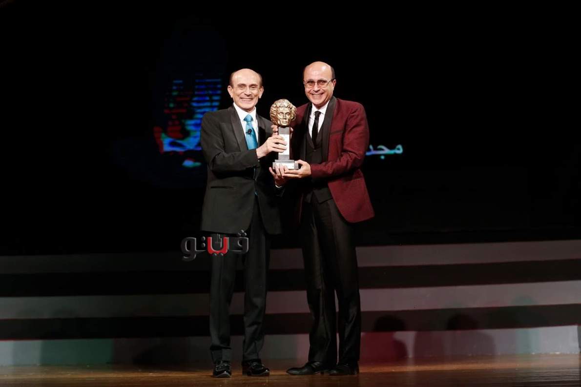 كما احتفى بأعضاء استوديو الممثل الذي أنشأه منذ سنوات وساهم من خلاله في اكتشاف عدد كبير من النجوم بجانب الأعمال المسرحية التي شاركوا في بطولتها.