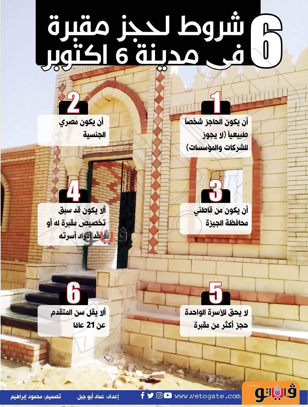 6 شروط لحجز مقبرة فى مدينة 6 اكتوبر..إنفوجراف السبت 19/ديسمبر/2020 - 03:54 م 12/19/2020 3:54:46 PM 6 شروط لحجز مقبرة فى مدينة 6 اكتوبر شارك طباعة 18 حجم الخط شارك طباعة حجز مقابر مقابر 6 أكتوبر مقابر محافظة الجيزة