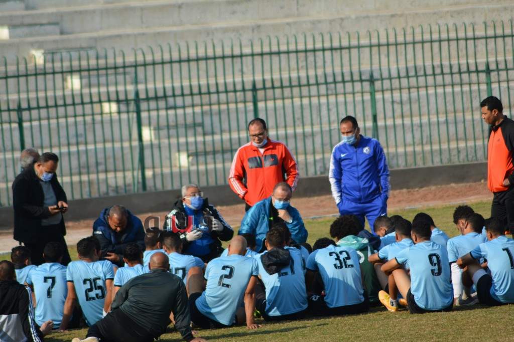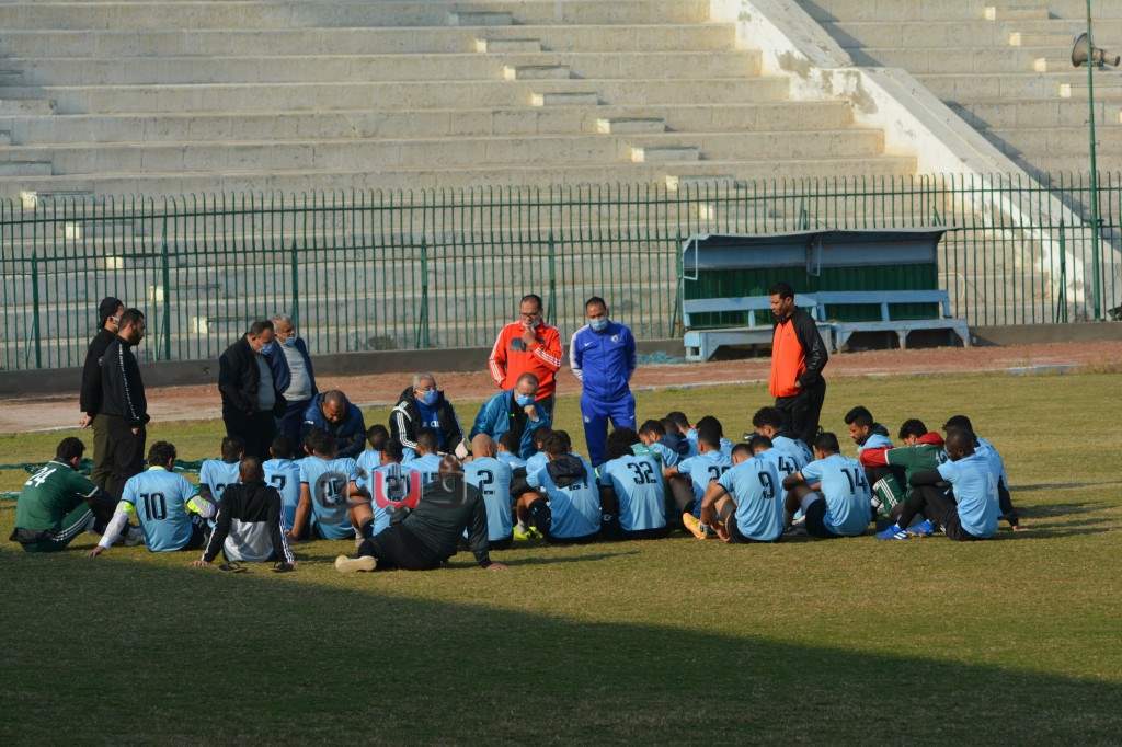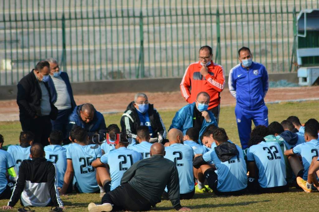 خالد عيد يجتمع بلاعبي المحلة بعد شفائه من كورونا | صور