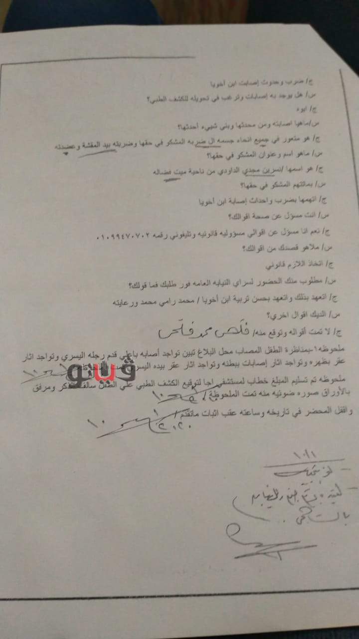 وعلى الفور حرر عم الطفل محضر بالواقعة حمل رقم ١٦١٣١ لسنة ٢٠٢٠ جنح أجا، وحرر والد الطفل هو الآخر محضرًا ولكن ضدد أخيه لكي يتنازل عن المحضر المحرر ضد زوجته لخوفه عليها.