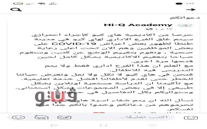 وأشار المهندس ماجد مسلم رئيس مجلس الإدارة في المؤسسة في بيان أصدره في الساعات الأولى من صباح اليوم على الصفحة الرسمية للمؤسسة التعليمية بأنهم سيقومون بغلق الفرع الإداري للمؤسسة بعد اكتشاف الإصابات مبينا أنهم يقومون صباح اليوم بالبدء في عملية التطهير.