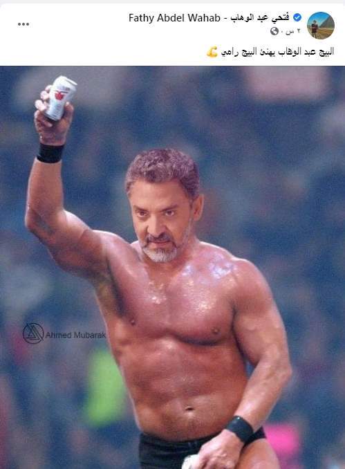 وبطريقة ساخرة، وضع فتحي عبد الوهاب صورته على جسد أحد أبطال ألعاب القوى معلقا عليها: "البيج عبد الوهاب يهنئ البيج رامي".